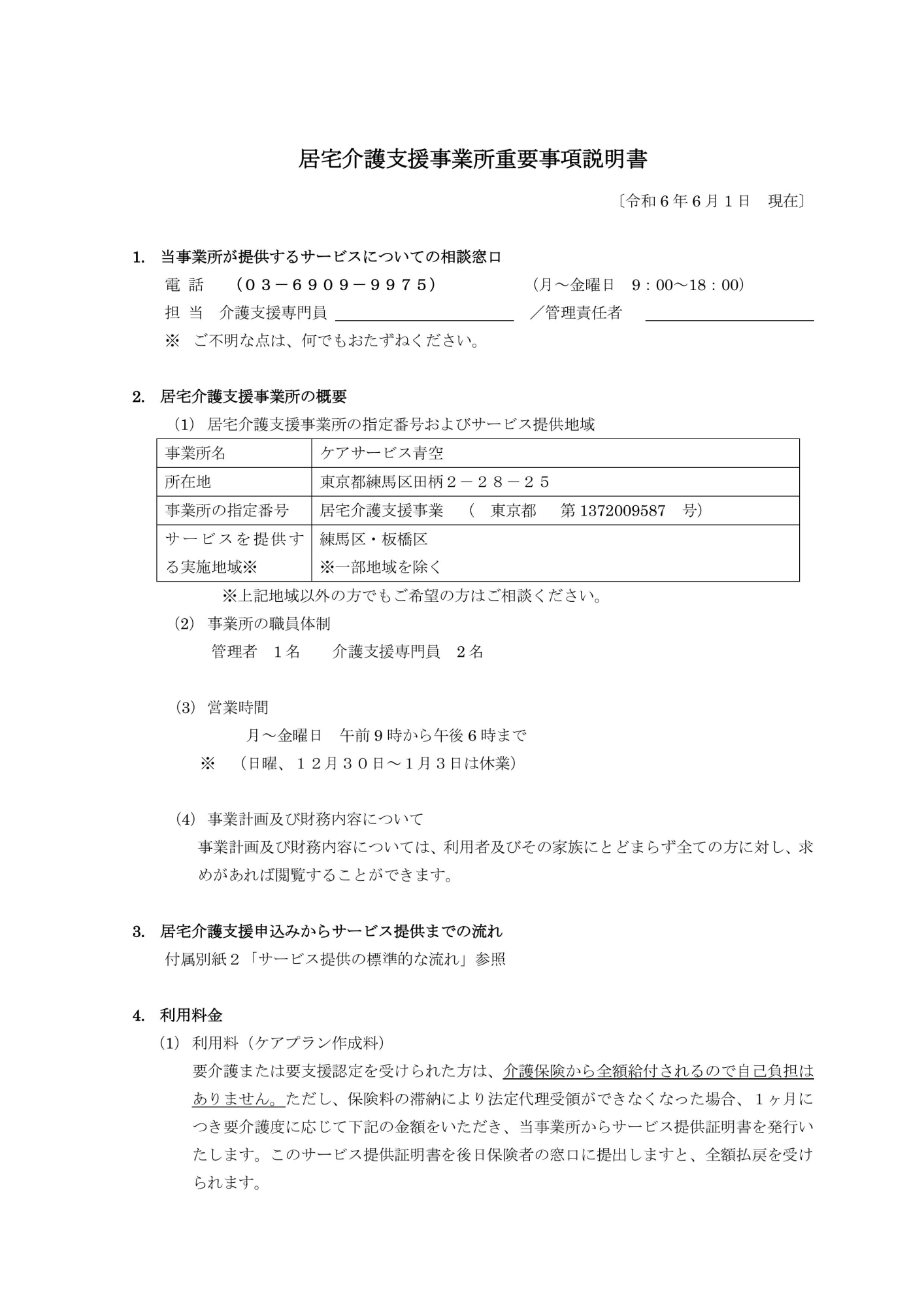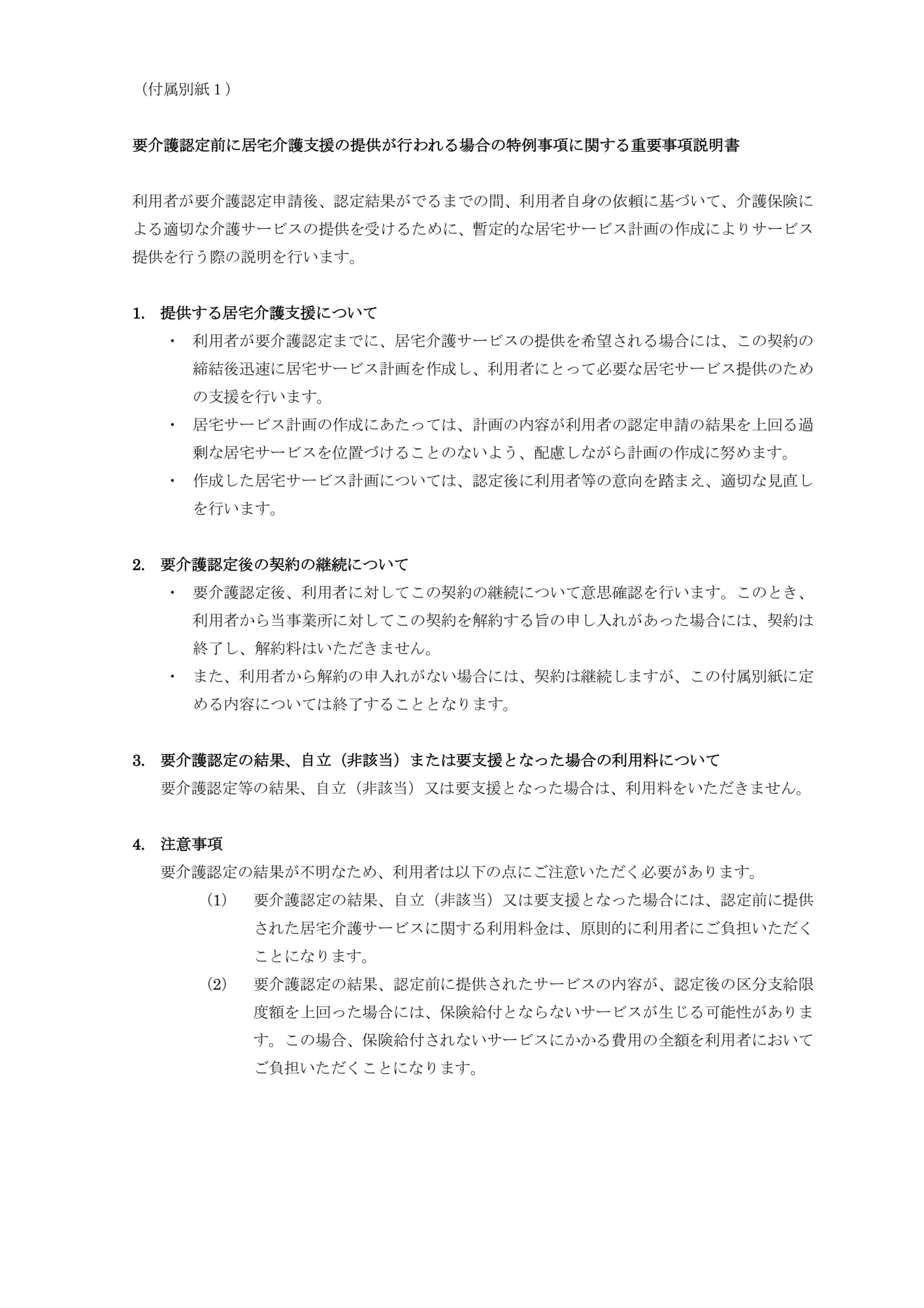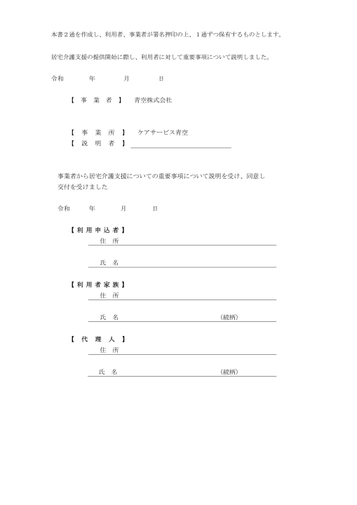 居宅介護支援 需要事項説明書